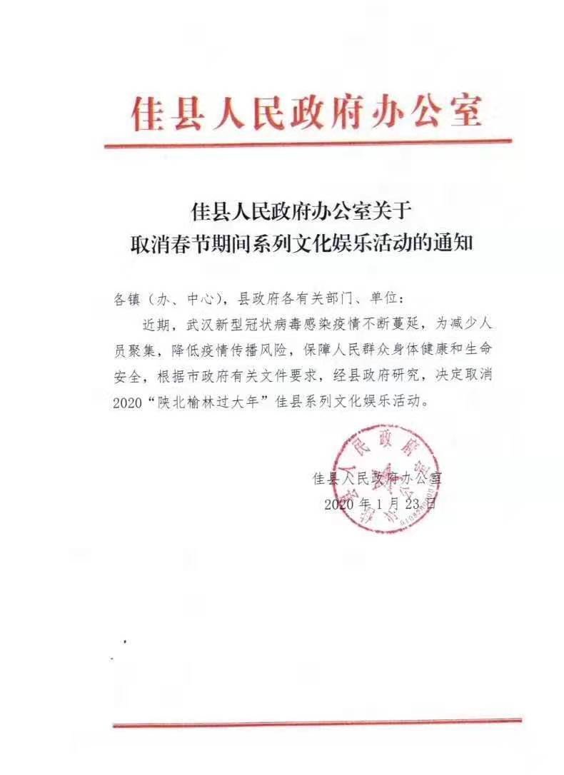 關(guān)于取消春節期間系列文化娛樂(lè )活動(dòng)的通知