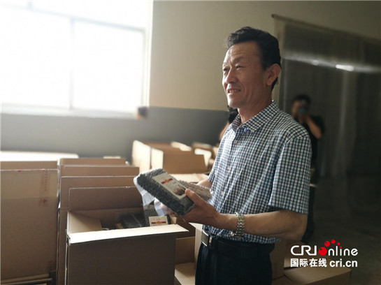 圖為高維軍向采訪(fǎng)團記者介紹產(chǎn)品情況
